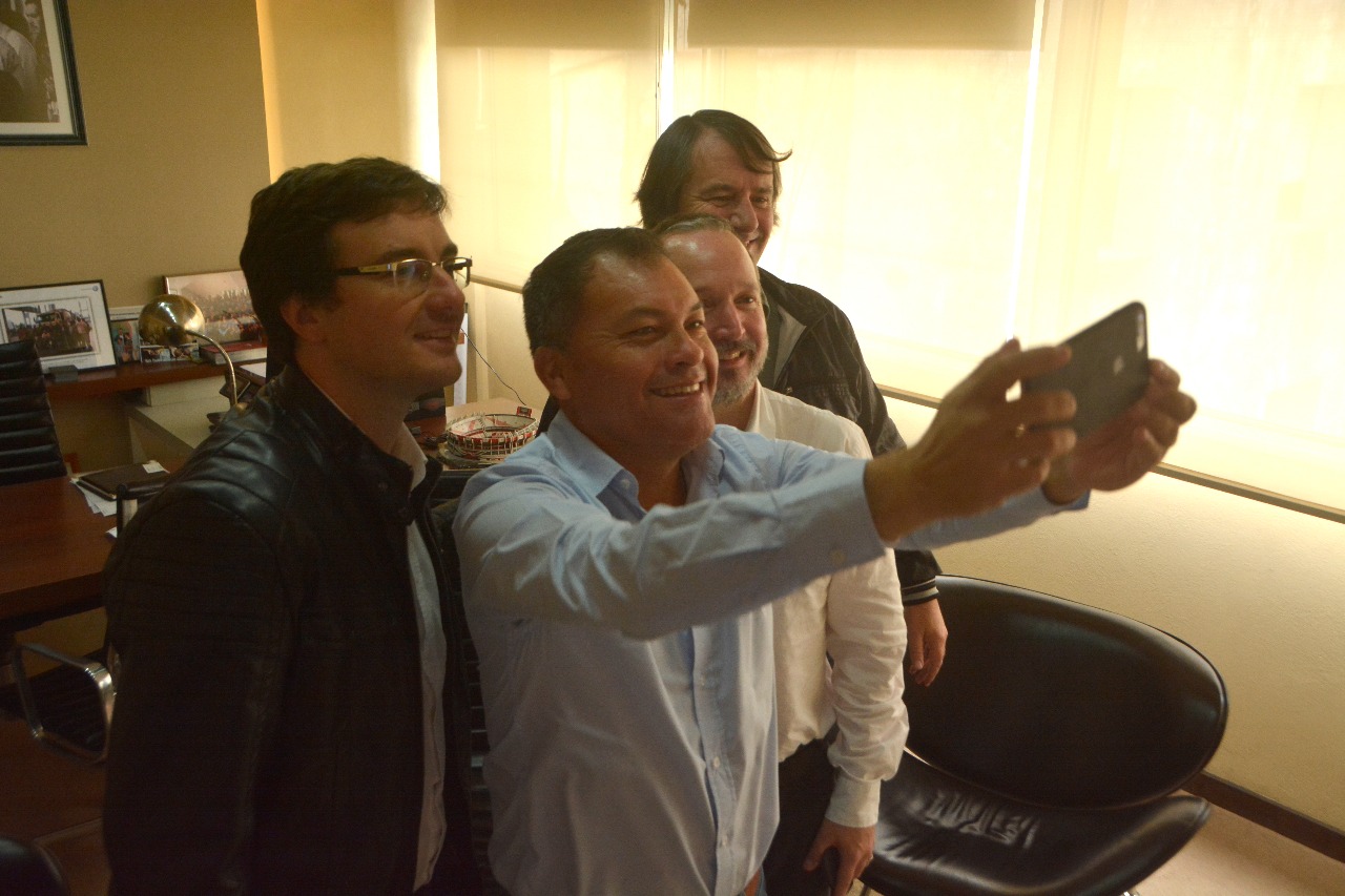 | Lucas Ghi, Walter Festa, Martín Sabbatella y el concejal Horacio Chiqué en la reunión realizada esta mañana en la oficina del intendente morenense |