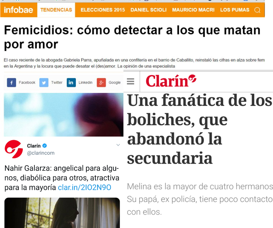 Nadie olvidará jamás el titular extremadamente misógino que publicó el diario Clarín tras el femicidio de una chica de 17 años “Una fanática que los boliches que abandonó la secundaria” Y el cuerpo de la noticia no es mucho mejor, describe la vida de la víctima y de su familia desde el prejuicio y la absoluta frialdad con la que sólo un periodista policial y amarillista puede referirse a cuestiones sensibles para la sociedad como lo es la desaparición y asesinato de una adolescente.
