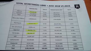 | Comparativa presupuestaria por secretarías entre lo presupuestado para el 2018 y lo previsto para el 2019. |