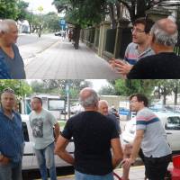 (El Palomar, 18/01) Los taxistas de El Palomar que prestan sus servicios en las puertas del aeropuerto se reunieron hoy, de manera improvisada, con el ex intendente Lucas Ghi, quién se trasladaba en su bicicleta por las calles de su barrio, como hace casi todos los días del año para movilizarse de escuela a escuela en las que da clases. La imágenes se viralizaron de inmediato por lo curioso del transporte que utiliza el ex jefe comunal, que este año competirá para volver al cargo que dejó en 2015 cuando fue reemplazado por Ramiro Tagliaferro. Pero más allá de lo pintoresco de las imágenes, los históricos transportistas moronenses aprovecharon el momento para dar a conocer, tanto a Ghi como al público en general a través de las redes sociales, las dificultades que están atravesando.