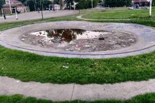 El enorme espacio verde ubicado en la intersección de las calles Arana y Patagones, lindero al Museo Aeronáutico, en el barrio 20 de Junio de Morón Sur, se encuentra en este momento prácticamente inutilizable. Con bolsas de basura con desechos comestibles, pastizales que tapan los bancos y las mesas, la pista de skate inundada y con vidrios y las veredas internas tapadas por el pasto sin cortar, sumado a la falta de iluminación convirtieron el lugar en un ámbito degradado y un foco infeccioso. Por eso los vecinos nos hicieron llegar sus reclamos. El intendente Ramiro Tagliaferro se encuentra vacacionando en Brasil junto a su novia pero el municipio quedó a cargo de la concejala Analía Zappulla, quien debería ordenar la inmediata intervención para evitar males mayores.