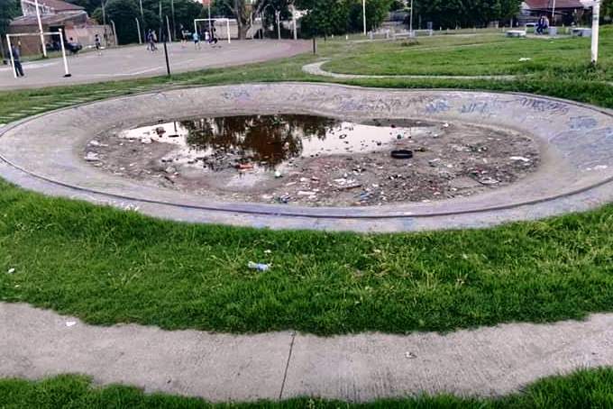 El enorme espacio verde ubicado en la intersección de las calles Arana y Patagones, lindero al Museo Aeronáutico, en el barrio 20 de Junio de Morón Sur, se encuentra en este momento prácticamente inutilizable. Con bolsas de basura con desechos comestibles, pastizales que tapan los bancos y las mesas, la pista de skate inundada y con vidrios y las veredas internas tapadas por el pasto sin cortar, sumado a la falta de iluminación convirtieron el lugar en un ámbito degradado y un foco infeccioso. Por eso los vecinos nos hicieron llegar sus reclamos. El intendente Ramiro Tagliaferro se encuentra vacacionando en Brasil junto a su novia pero el municipio quedó a cargo de la concejala Analía Zappulla, quien debería ordenar la inmediata intervención para evitar males mayores.