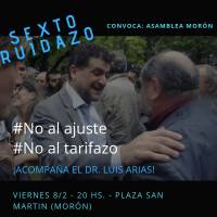 Finalmente, a las 20 horas, en la Plaza San Martín del centro de la ciudad, sobre el mismo municipio, la Asamblea Morón convoca al sexto ruidazo contra los tarifazos de luz, gas, agua y el Municipal que sufrió un incremento del 50 %. Esta vez, además de referentes políticos que ya vienen participando, como los dirigentes y concejales de Unidad Ciudadana, también se sumará el ex juez Luis Arias que cerrará la movilización ciudadana como orador.