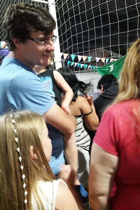 Ghi, que este año competirá frente a Ramiro Tagliaferro para disputarle el cargo de intendente, dialogó con los vecinos mientras sus dos pequeños hijos jugaban al carnaval. Este año, el Municipio de Morón no organizó ningún corso oficial y los pocos que se están realizando están a cargo de los propios centros murgueros o espacios sociales.