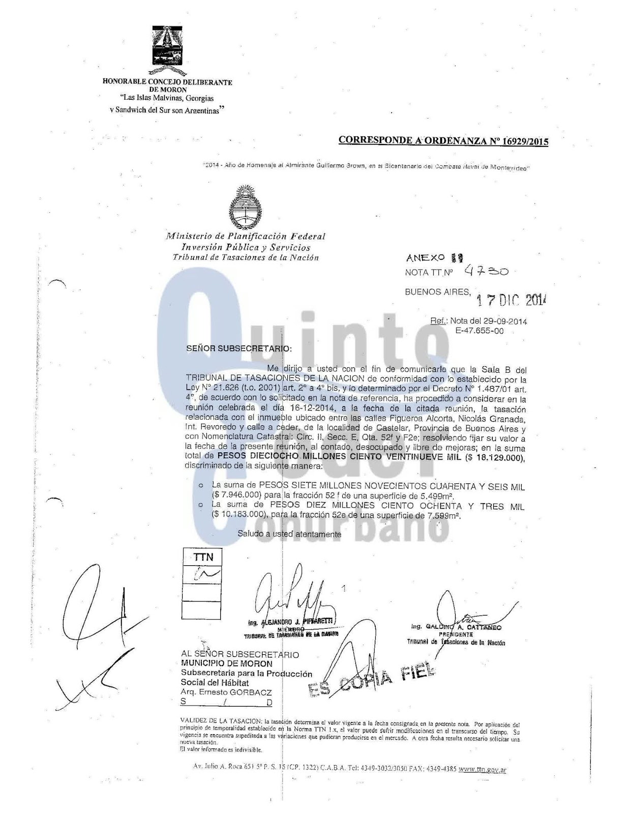 Kreiman recordó que «en el año 2015 se aprobó por ordenanza un convenio de colaboración entre la cooperativa y la municipalidad que implicaba la permuta de estos terrenos (de la Cooperativa Hogar Obrero en Morón Norte donde estuviera ubicada la histórica quinta Paracone, donde la gestión de Lucas Ghi tenía previsto generar un nuevo espacio verde) por otros en el municipio de Morón: Uno en el centro de Morón (en Yatay al 800) y otro en la Base Aérea (de Morón Sur) junto a donde se están construyendo las viviendas del plan Procrear…»