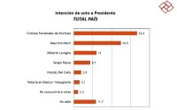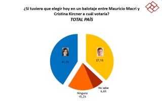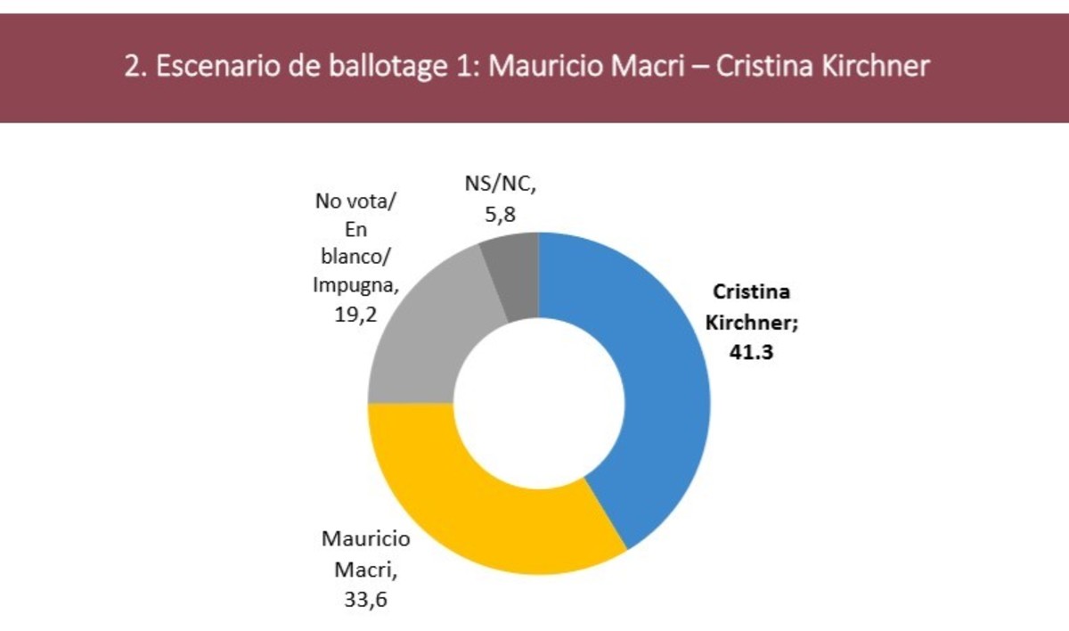 En el ballotage Mauricio Macri 37, 1 % Cristina Fernández de Kirchner 41, 1 %.
