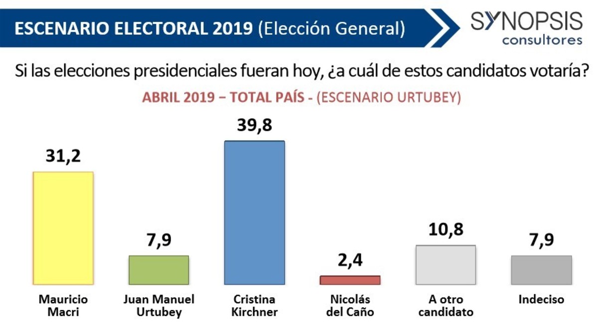Los estudios sociológicos son vastos y abordan distintos escenarios. En todos los casos, la mejor performance de Macri (aún derrotado) es con Roberto Lavagna compitiendo en las elecciones. Los otros escenarios, por ejemplo con Juan Manuel Urtubey o Sergio Massa, no hacen más que extender las chances electorales de Cristina Fernández de Kirchner.