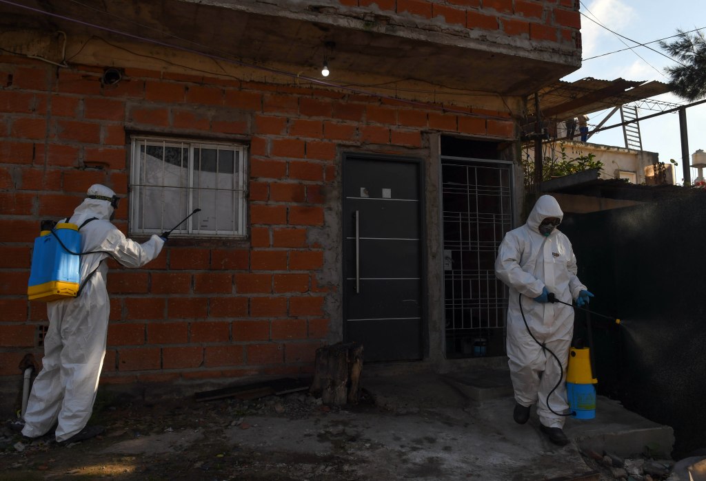 Los voluntarios del Ministerio de Desarrollo bonaerense comentaron que en el operativo, como parte del proceso de sanitización, rocían «un producto especial por cada casa y en todas las manzanas que forman parte de este barrio».