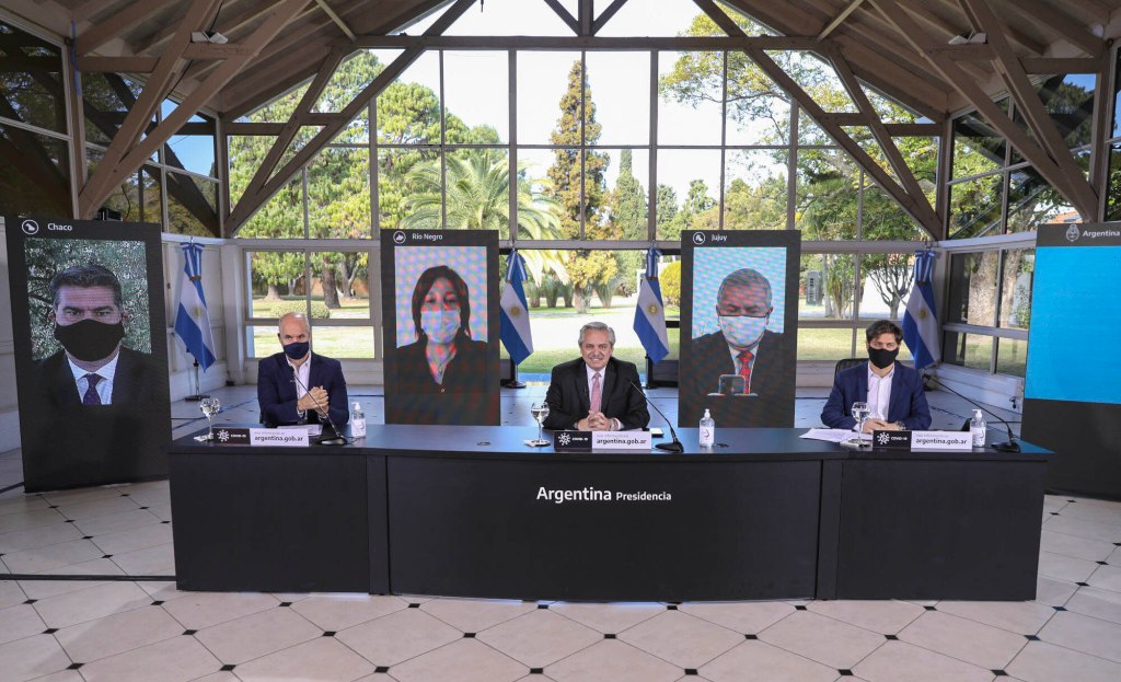 De los anuncios participaban también, por videoconferencia, los gobernadores Jorge Capitanitch (Chaco), Arabela Carreras (Río Negro) y Gerardo Morales (Jujuy), quienes brindaron un análisis de la situación en sus provincias.