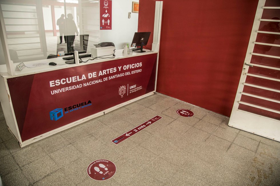 Por su parte, el coordinador académico de esta escuela, Cristian Fabián Navarro, comentó que se colocaron vidrios protectores en el sector administrativo para la atención al público, como también en todos los ingresos hay una alfombra sanitizante y un dispositivo mecánico que presiona con el pie y sale el alcohol en gel, además hay señalizaciones en todos los espacios para respetar el distanciamiento de 2 metros.