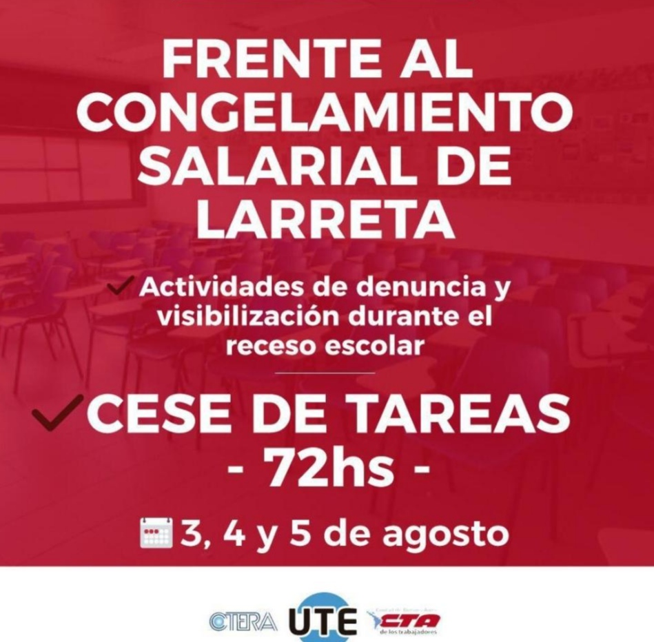 Desde el gremio UTE, a través de un comunicado denunciaron el «desinterés y desprecio del jefe de Gobierno, Rodríguez Larreta, y de la ministra, Soledad Acuña, por lxs docentes y la educación pública», ya que en la conferencia de prensa que brindó el 17 de julio agradeció a los y las docentes por su trabajo pero, paradójicamente, tan sólo una hora después funcionarios del Ministerio de Educación porteño anunciaron que no pagarían el aumento del mes julio y que congelarían los sueldos.