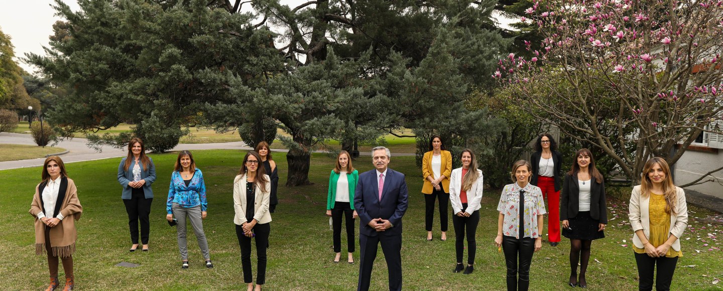 Los temas centrales del encuentro fueron los desafíos actuales y de corto plazo en materia de género, las políticas de reactivación económica pospandemia, y las distintas iniciativas de apoyo a las mujeres emprendedoras. El Presidente estuvo acompañado por la vicejefa de Gabinete, Cecilia Todesca Bocco; la ministra de Mujeres, Géneros y Diversidad, Elizabeth Gómez Alcorta, y la asesora presidencial Cecilia Nicolini.