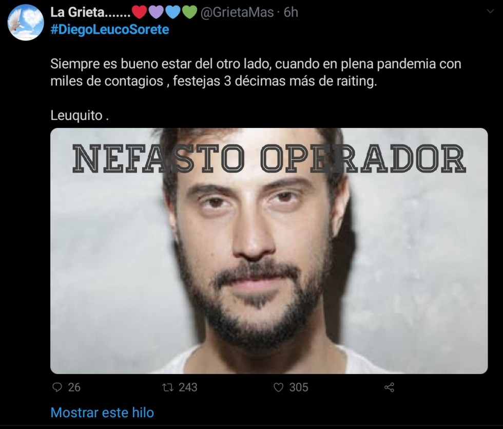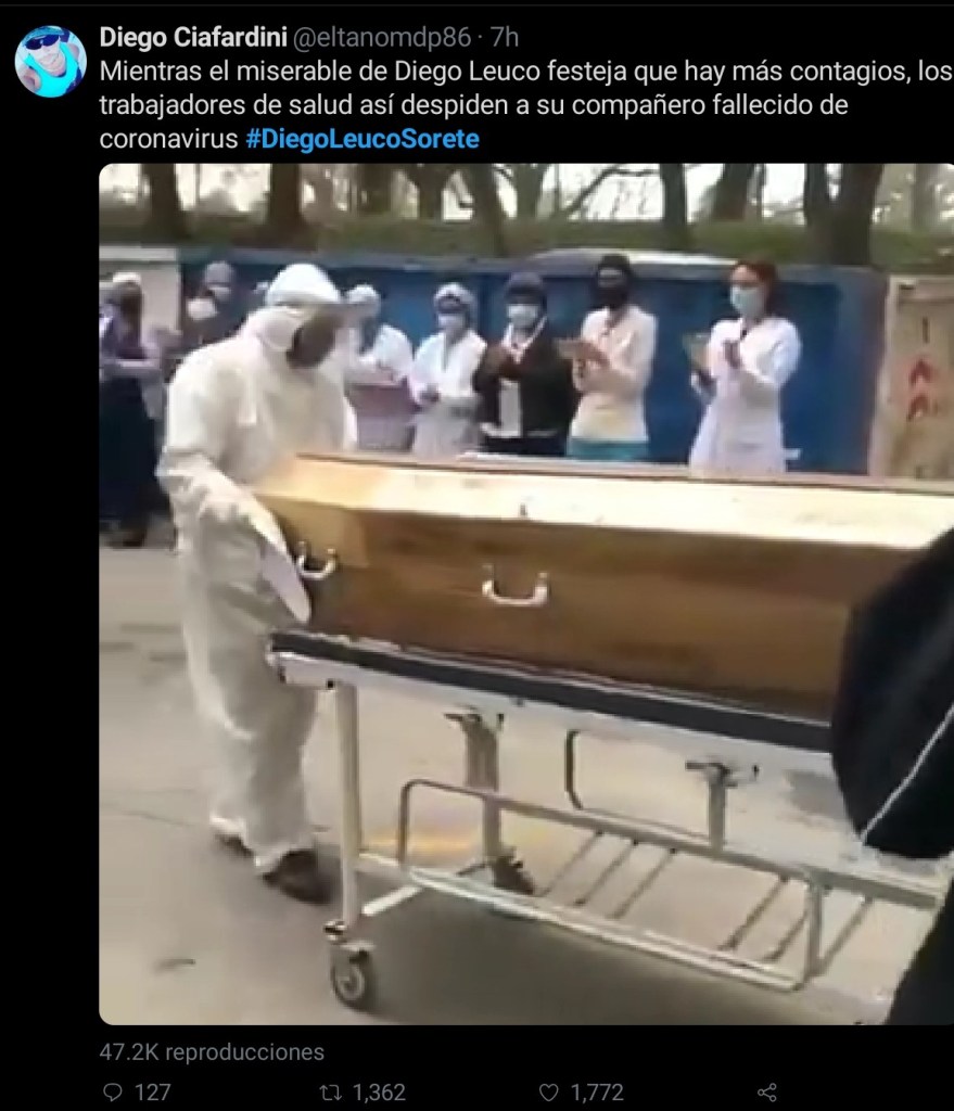 Más allá de las especulaciones, la imagen fue clara e impacto en las redes, con un repudio social e incluso de colegas del medio, ya que aún si se refiriera al rating resulta inapropiado y superfluo cuando se tocan temas tan sensibles como los fallecimientos por Covid – 19.