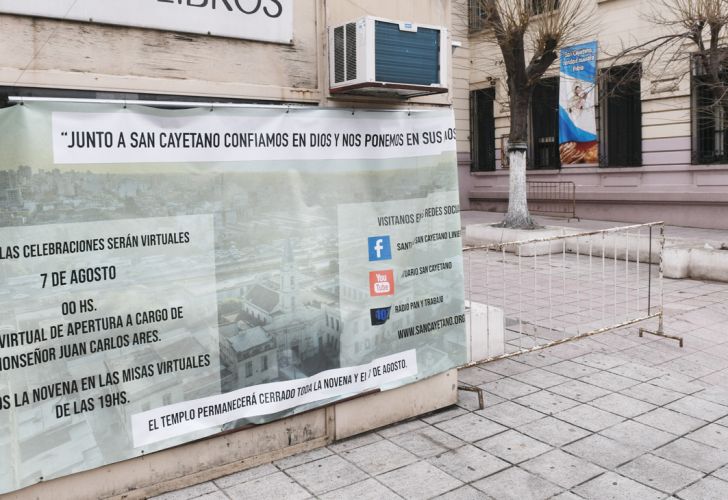 La celebración que congrega a miles de peregrinos cada 7 de agosto, este viernes se vio reducida a la presencia de los medios de prensa y una fila de 50 agentes de prevención, además de policías y personal de Espacio Público de la Ciudad de Buenos Aires, quienes rodeaban la manzana de la parroquia de San Cayetano.