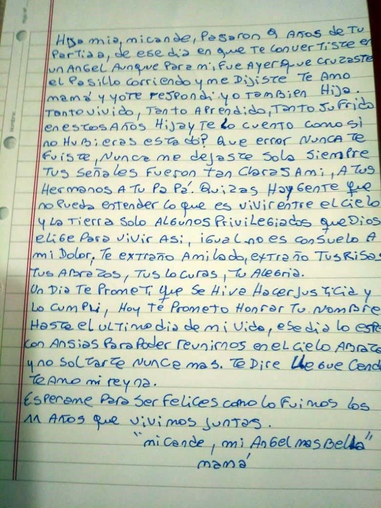 «Ya pasaron nueve años desde que se fue al cielo y seguimos esperando que cierre la gran herida que tenemos. Todos los culpables tienen que pagar por cada una de las participaciones en el crimen. Voy a dar mi vida para que todos paguen con la cárcel y honrar el nombre de mi hija hasta el final», agregó.