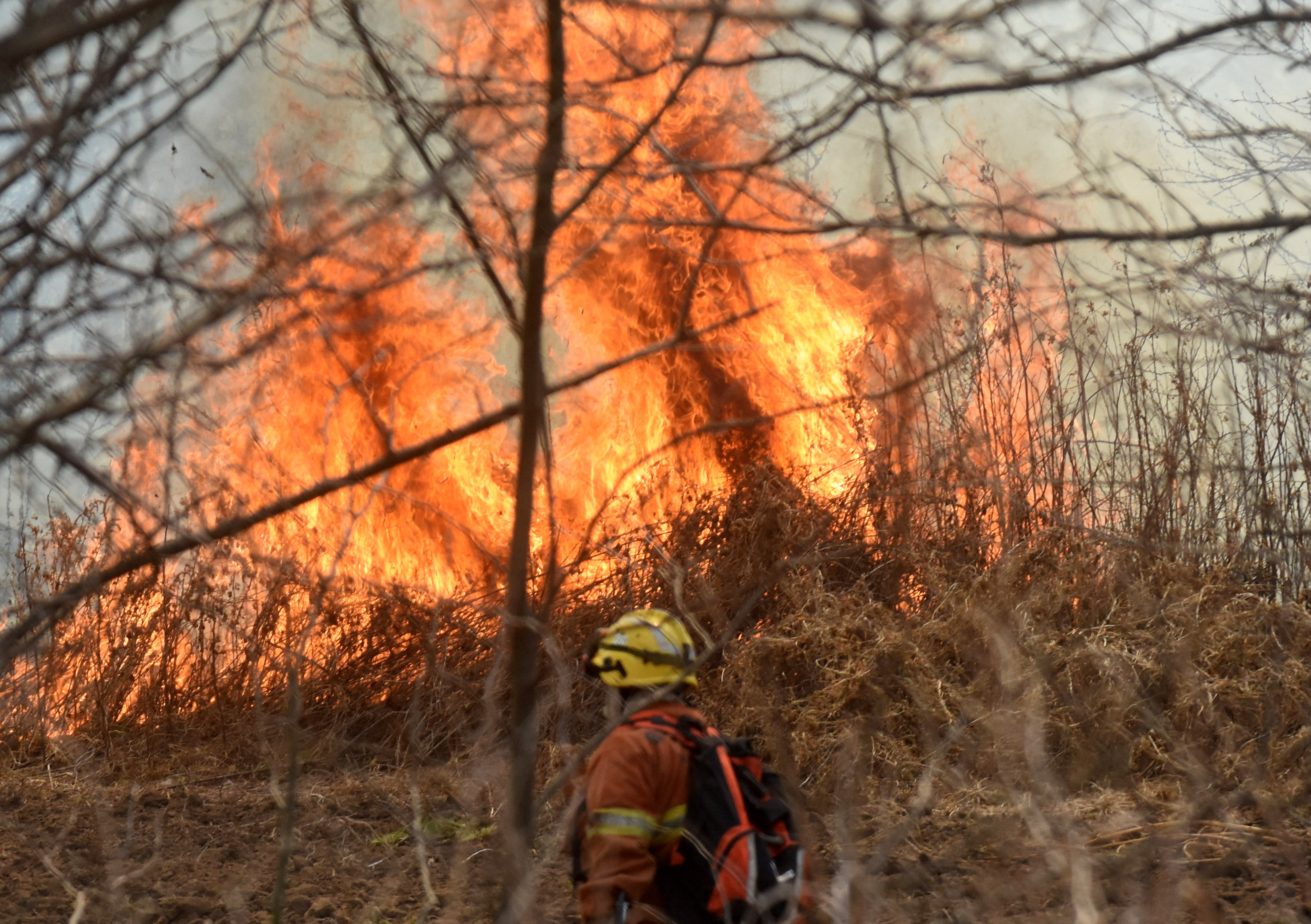 “En los alrededores del Observatorio Astronómico de Bosque Alegre se desplazaron 70 bomberos voluntarios que luchan contra el fuego, que ya cruzó el camino y avanza quemando monte y pastizal en dirección a los ríos La Suela y San José”, precisó el director de Defensa Civil, Diego Concha, en un comunicado que difundió la provincia.
