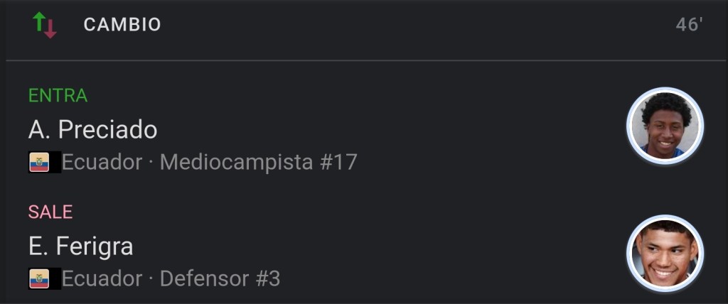 Ecuador, que presentará el debut del entrenador argentino Gustavo Alfaro, arrancó con estos once jugadores: Alexander Domínguez; Erick Ferigra, Xavier Arreaga, Robert Arboleda y Pervis Estupiñán; Renato Ibarra, Carlos Gruezo, Alan Franco y Moisés Caicedo; Enner Valencia y Ángel Mena.