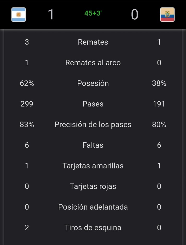 Estadísticas del primer tiempo