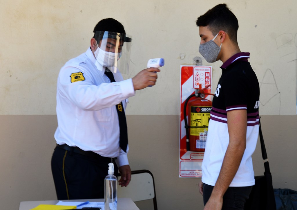 Tomás Gómez, otro de los alumnos, reconoció que «algo de miedo a contagiarme tengo, no tanto por mí sino por mi familia». En la puerta, los estudiantes fueron recibidos con alcohol en gel, se les tomó la temperatura y se les dio una máscara para usarla durante su estadía en la escuela.