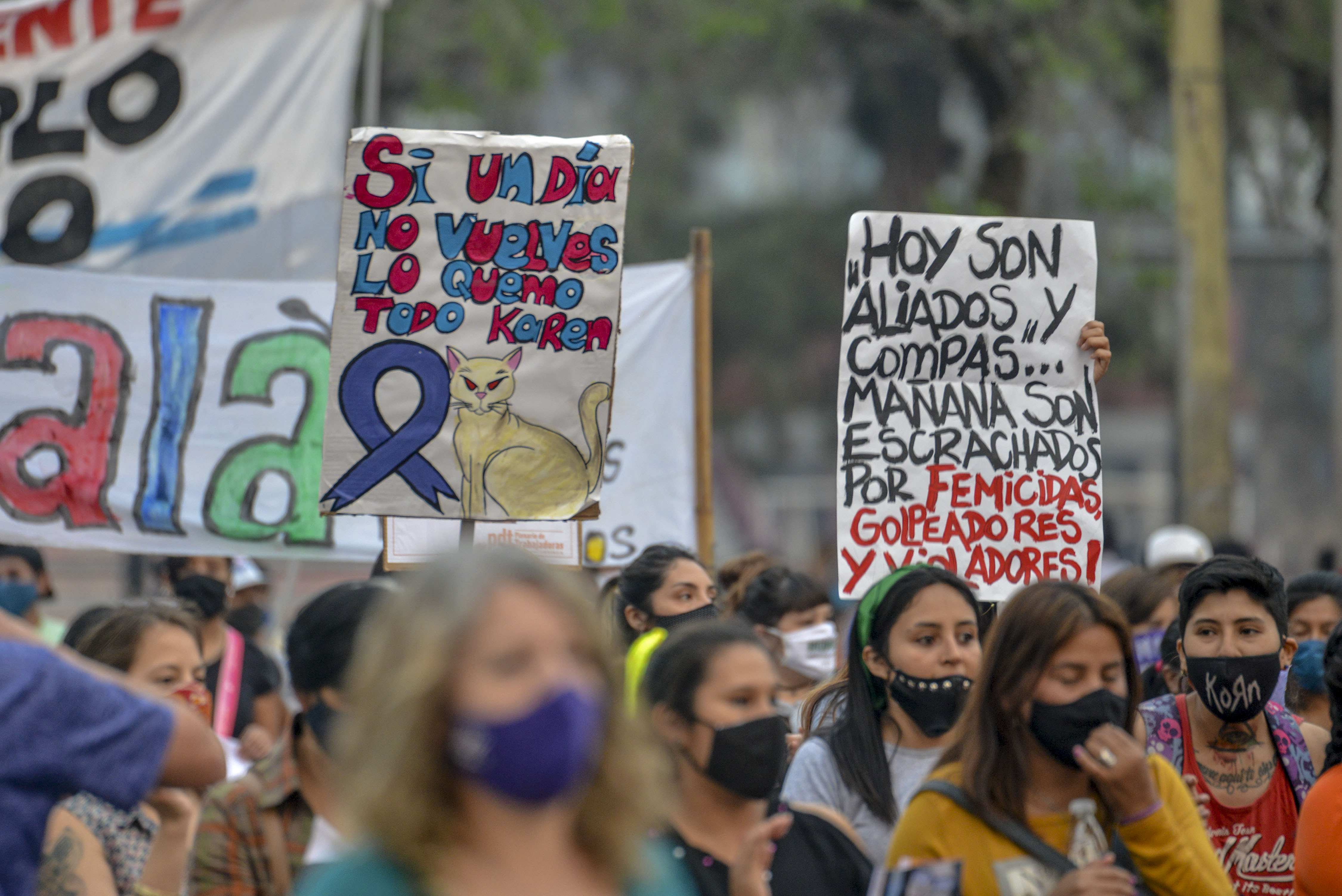 El pedido de justicia por Cesia Reinaga (20), Iara Rueda (16), Roxana Mazala (32), Gabriela Cruz (24) y Alejandra Álvarez (17) se pudo leer en carteles y fue escuchado una vez más desde el dolor de los padres y familiares de las víctimas que también formaron parte de la movilización.