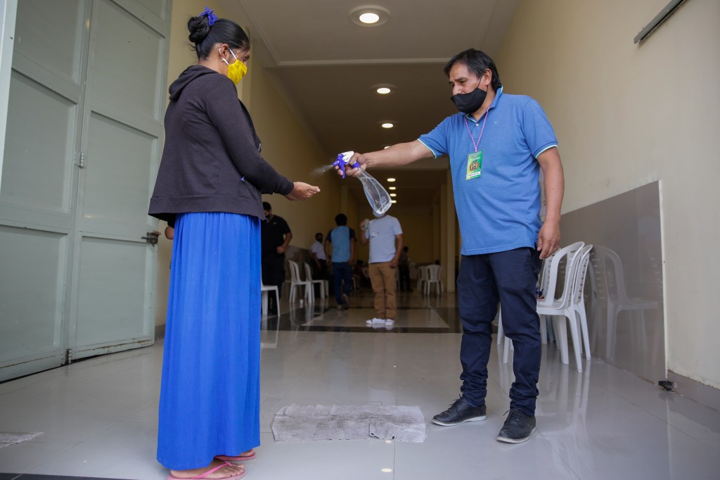 Mientras se garantizaba el alcohol en gel en cada espacio y la desinfección de los electores al entrar y salir del establecimiento, en la vereda, un grupo de empleados del municipio de La Matanza controlaba que se respetara el distanciamiento físico, el uso del barbijo y proporcionaba alcohol a las personas que aguardaban su momento.