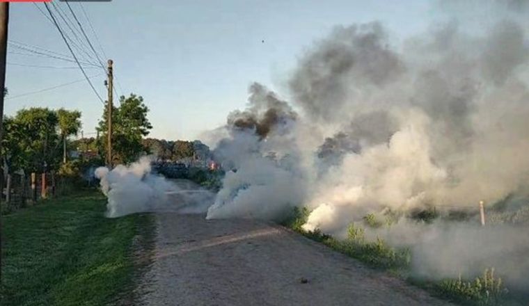 Esta mañana, dentro del predio ocupado se escucharon algunas detonaciones y se observaron columnas de humo por la quema de algunas casillas levantadas en el lugar.