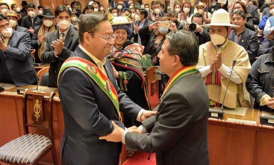 El presidente electo y el vicepresidente, David Choquehuanca, asumieron este domingo en una histórica ceremonia el traspaso de mando en la sede de la Asamblea Legislativa Plurinacional, en la que participaron representantes de más de 100 países.