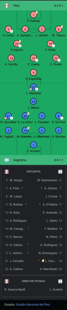 El seleccionado nacional, dirigido por Lionel Scaloni, jugó en Lima ante el equipo que comanda Ricardo Gareca, en el Estadio Nacional, en un contexto de crisis social, política e institucional.