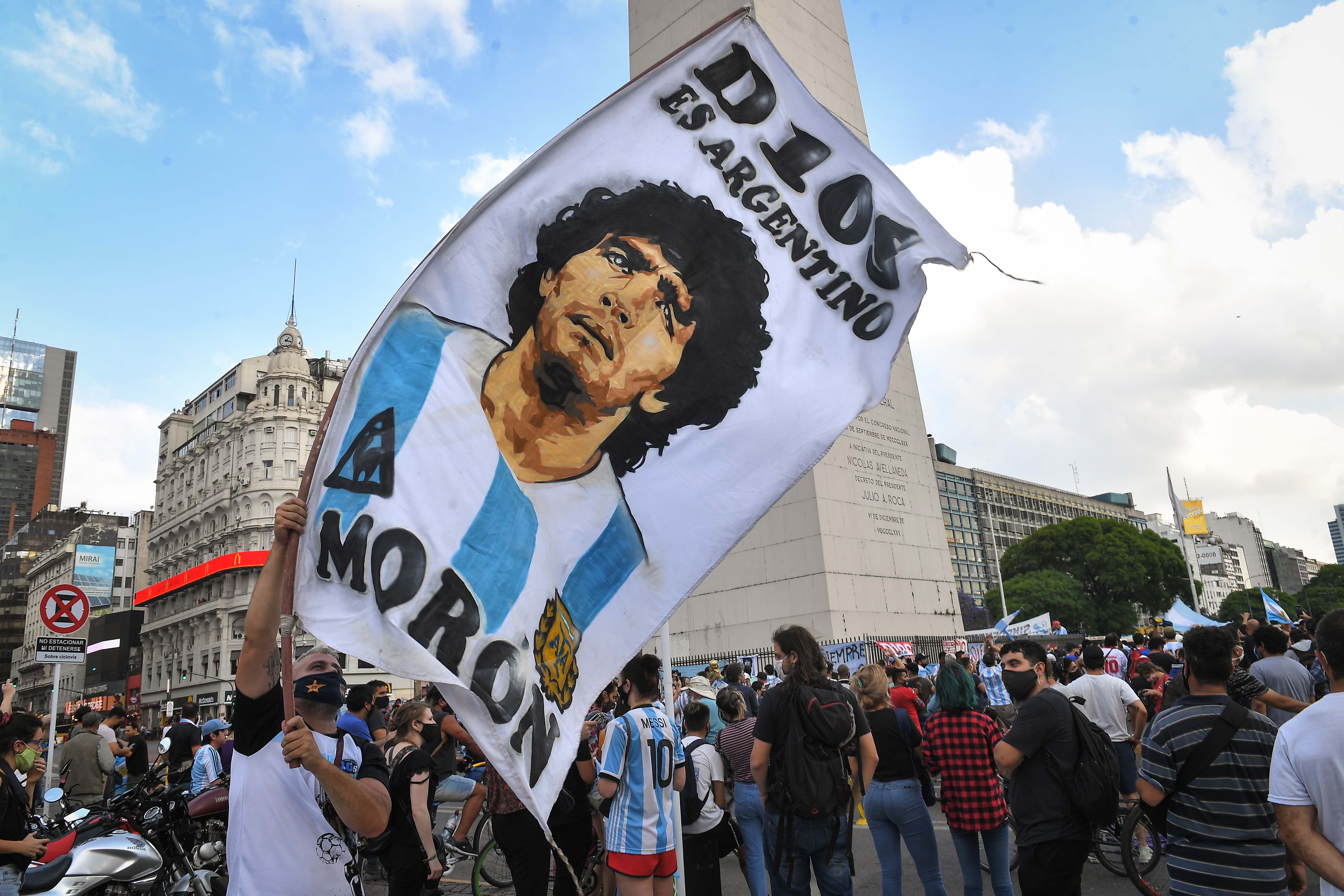 Miles de hinchas del fútbol, sin importar su club, se reúnen el Obelisco porteño para despedir y homenajear a Diego Maradona, quien falleció este miércoles cerca del mediodía.