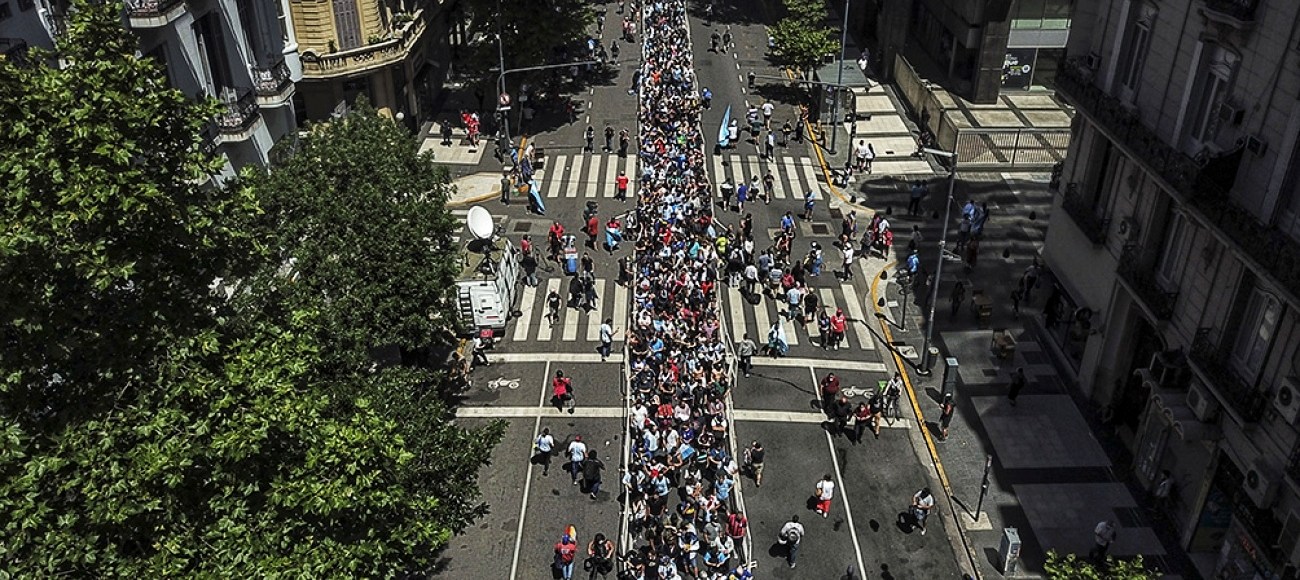 La policía de la Ciudad de Buenos Aires había cortado el ingreso a la Plaza de Mayo a la altura de la avenida 9 de Julio, cuando restaban poco menos de tres horas para que termine el velatorio de Diego Armando Maradona y miles de personas quedaron afuera del perímetro.