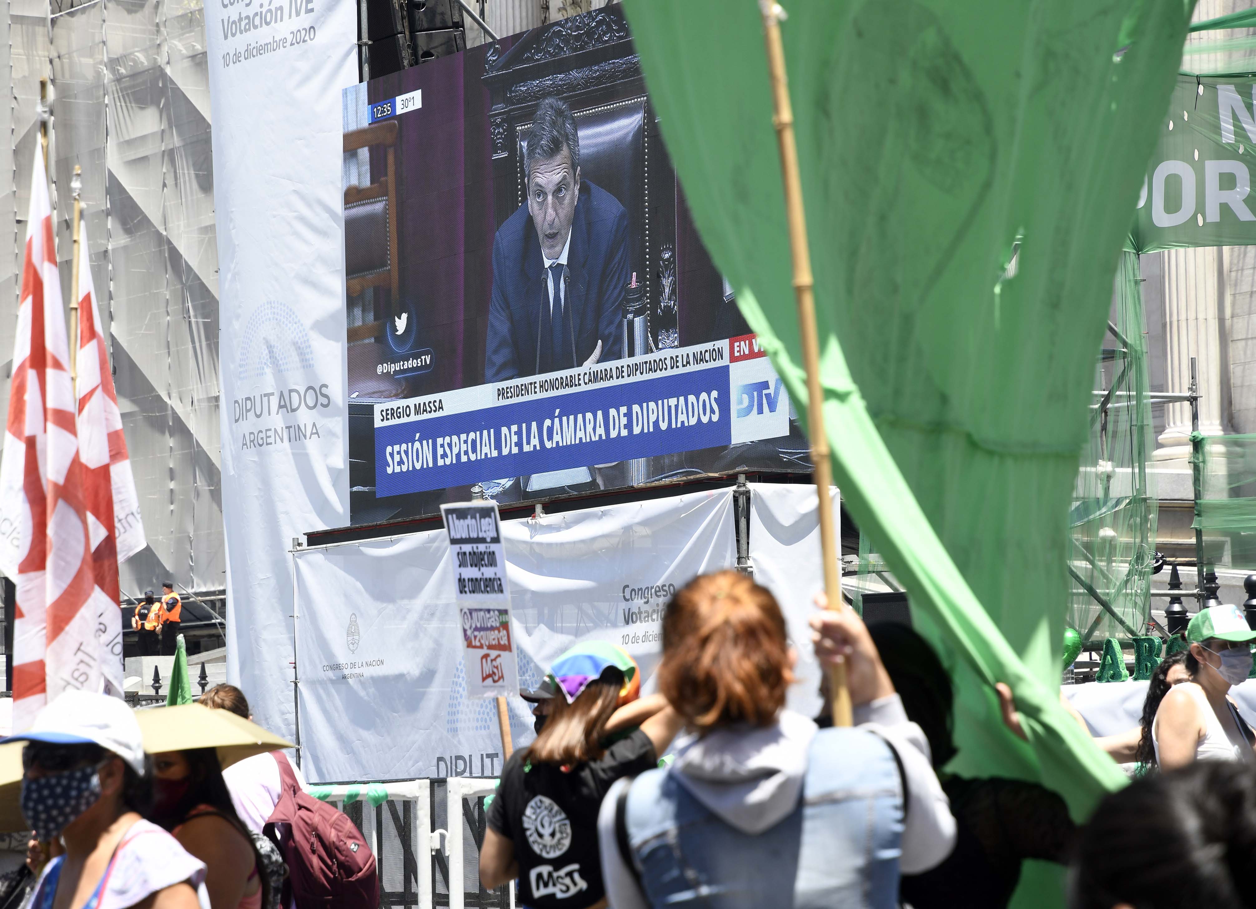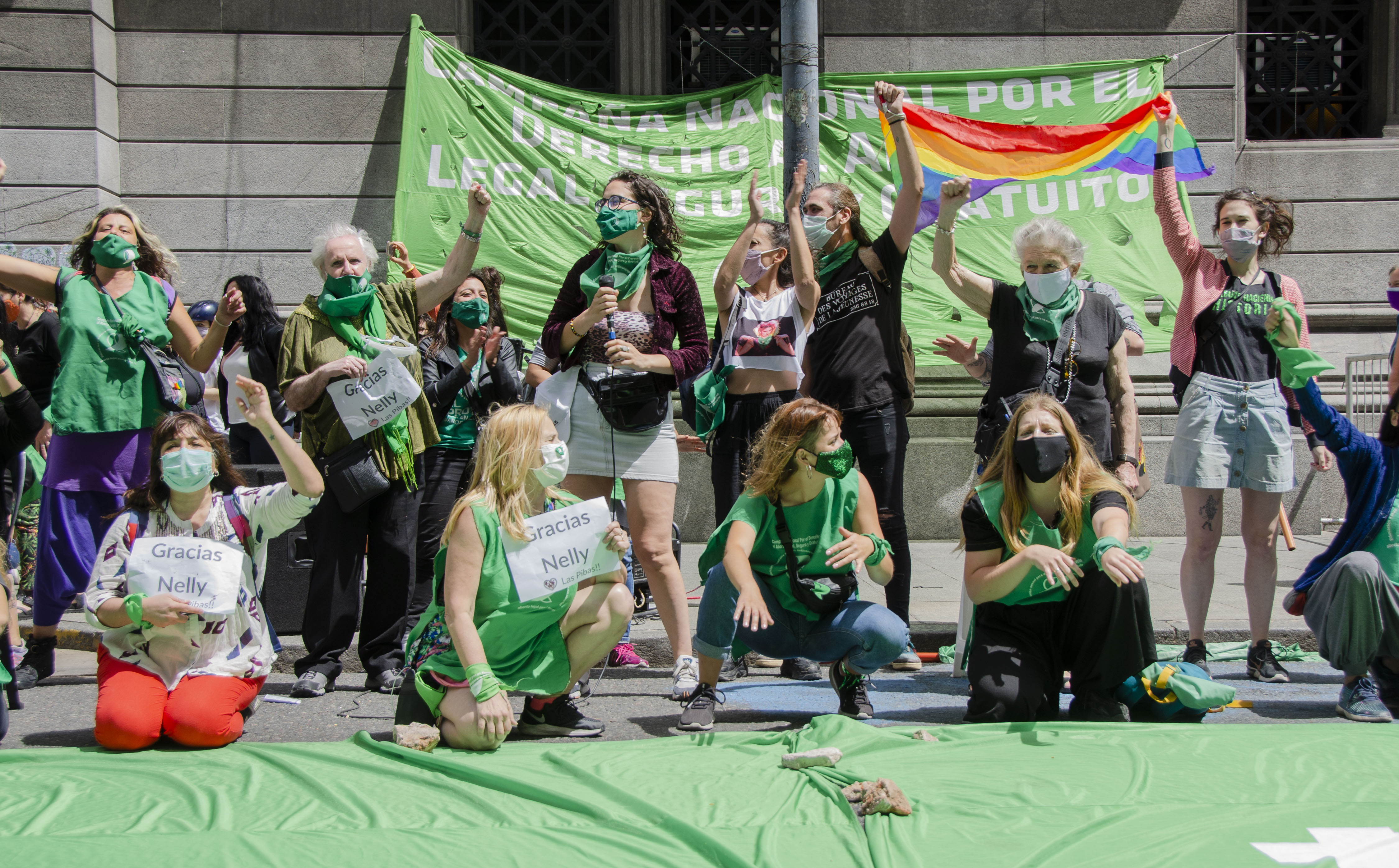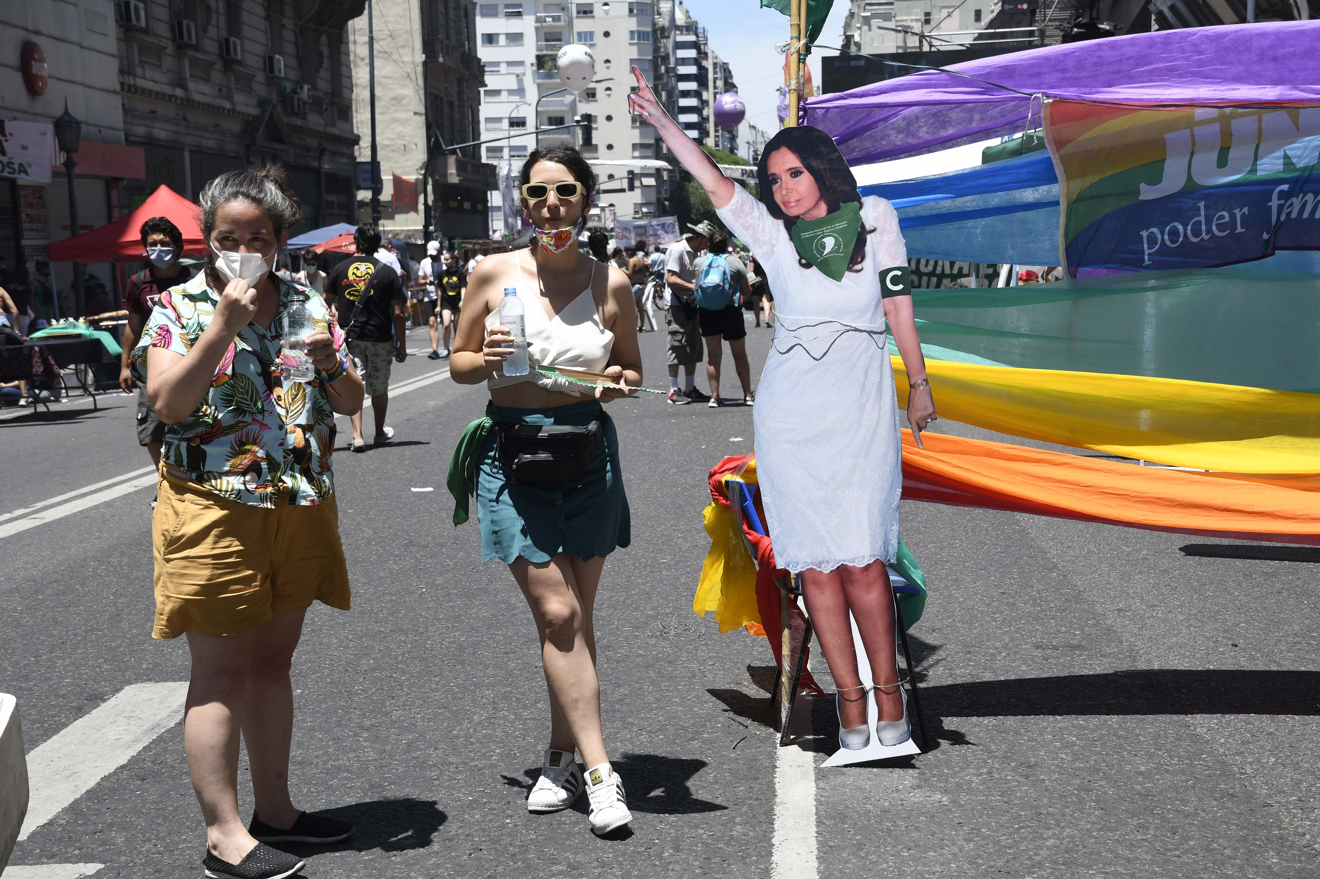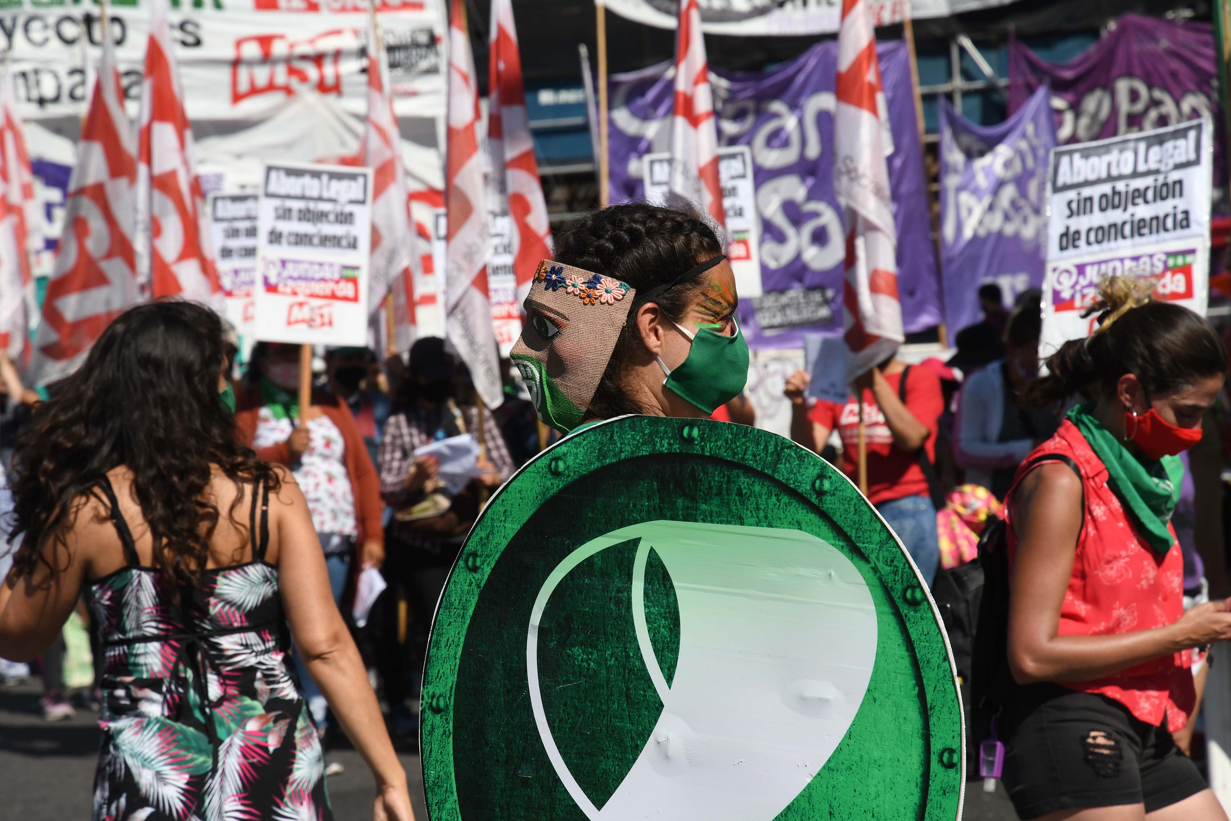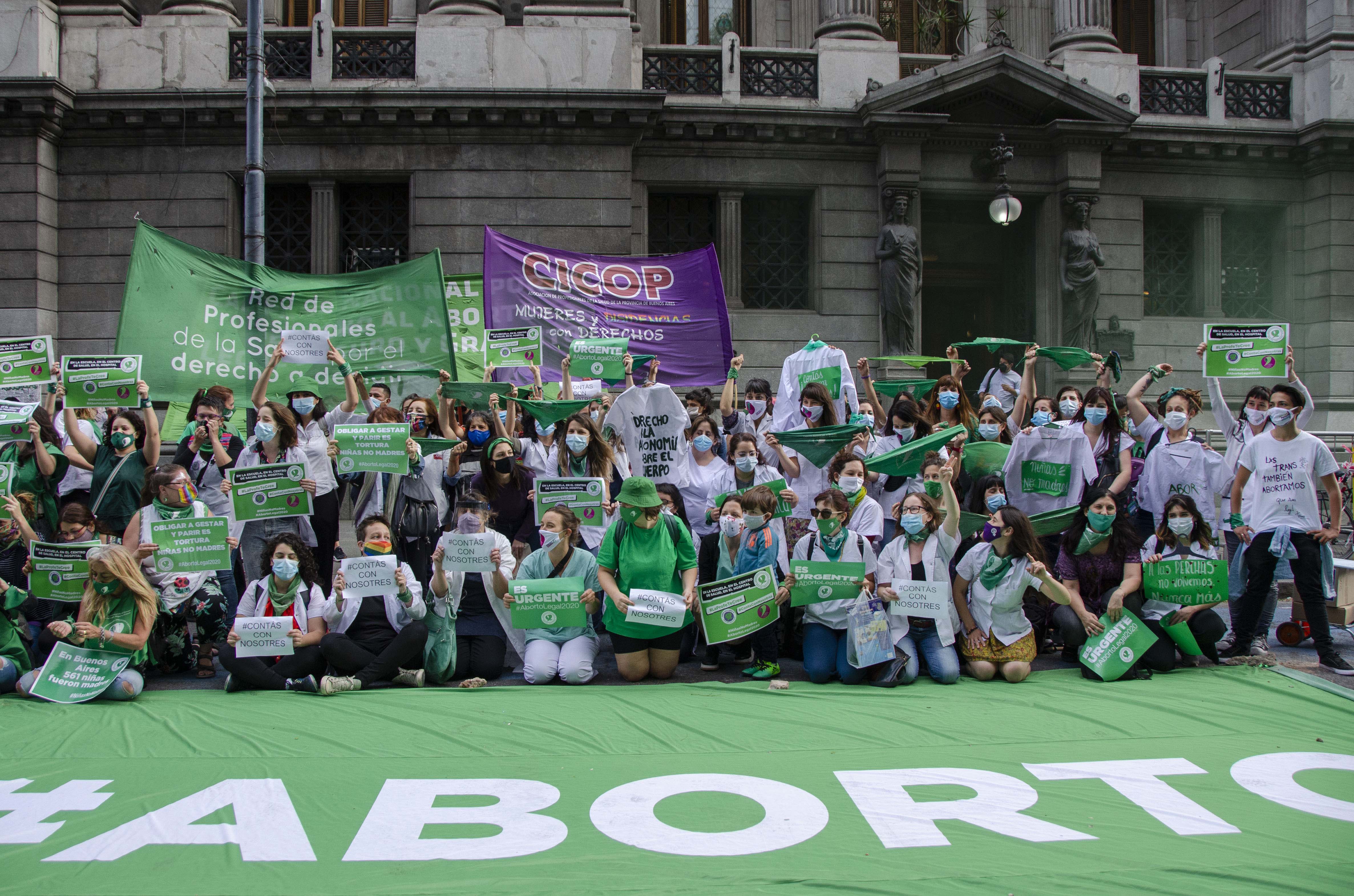 Integrantes de distintas organizaciones feministas, gremios y partidos políticos colmabanel sector «verde» dispuesto en las inmediaciones del Congreso Nacional donde los diputados iniciaron el debate del proyecto de ley de Interrupción Voluntaria del Embarazo (IVE) y el Plan de los 1000 días para la protección integral a la persona gestante y el niño hasta los primeros tres años de vida.