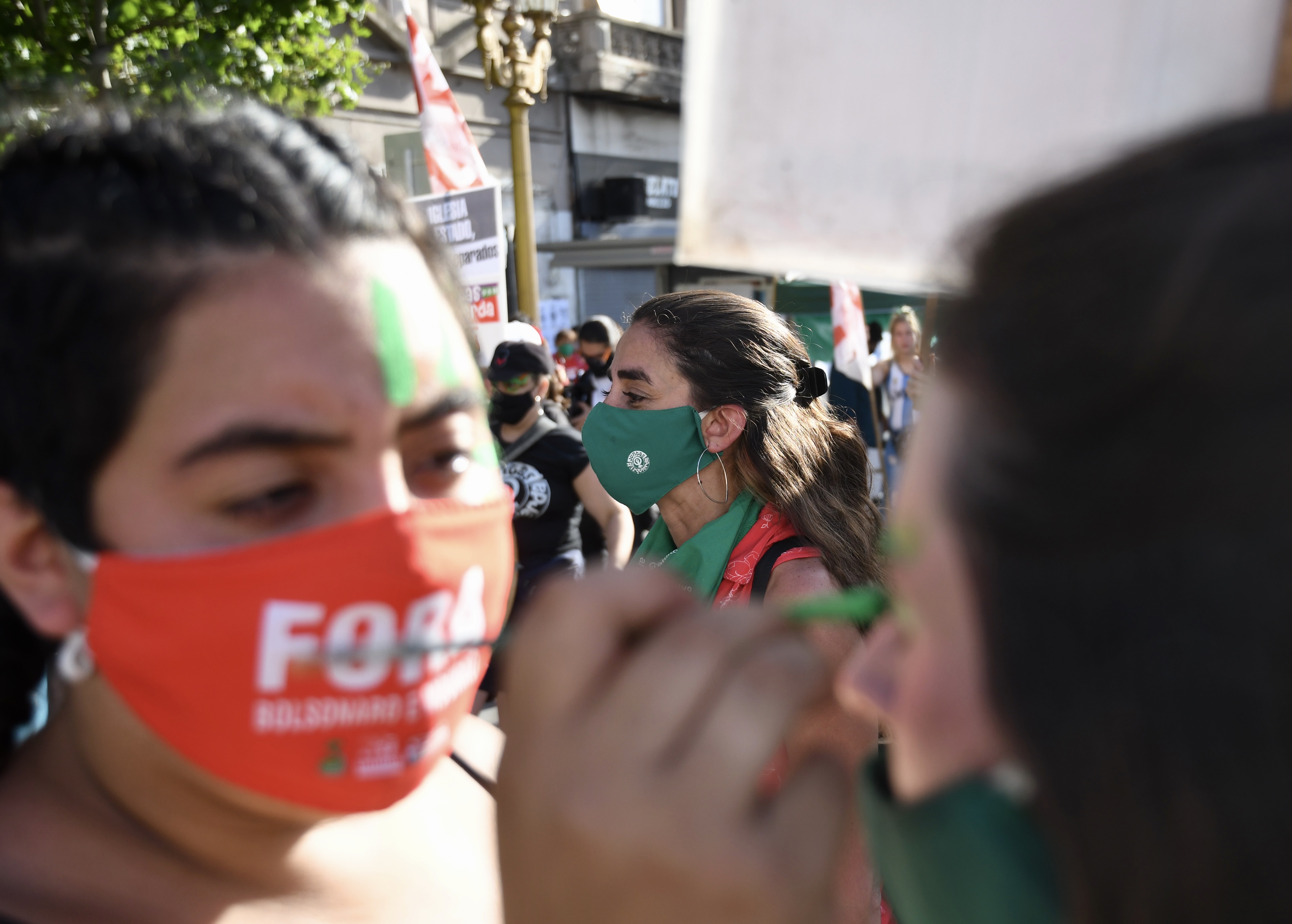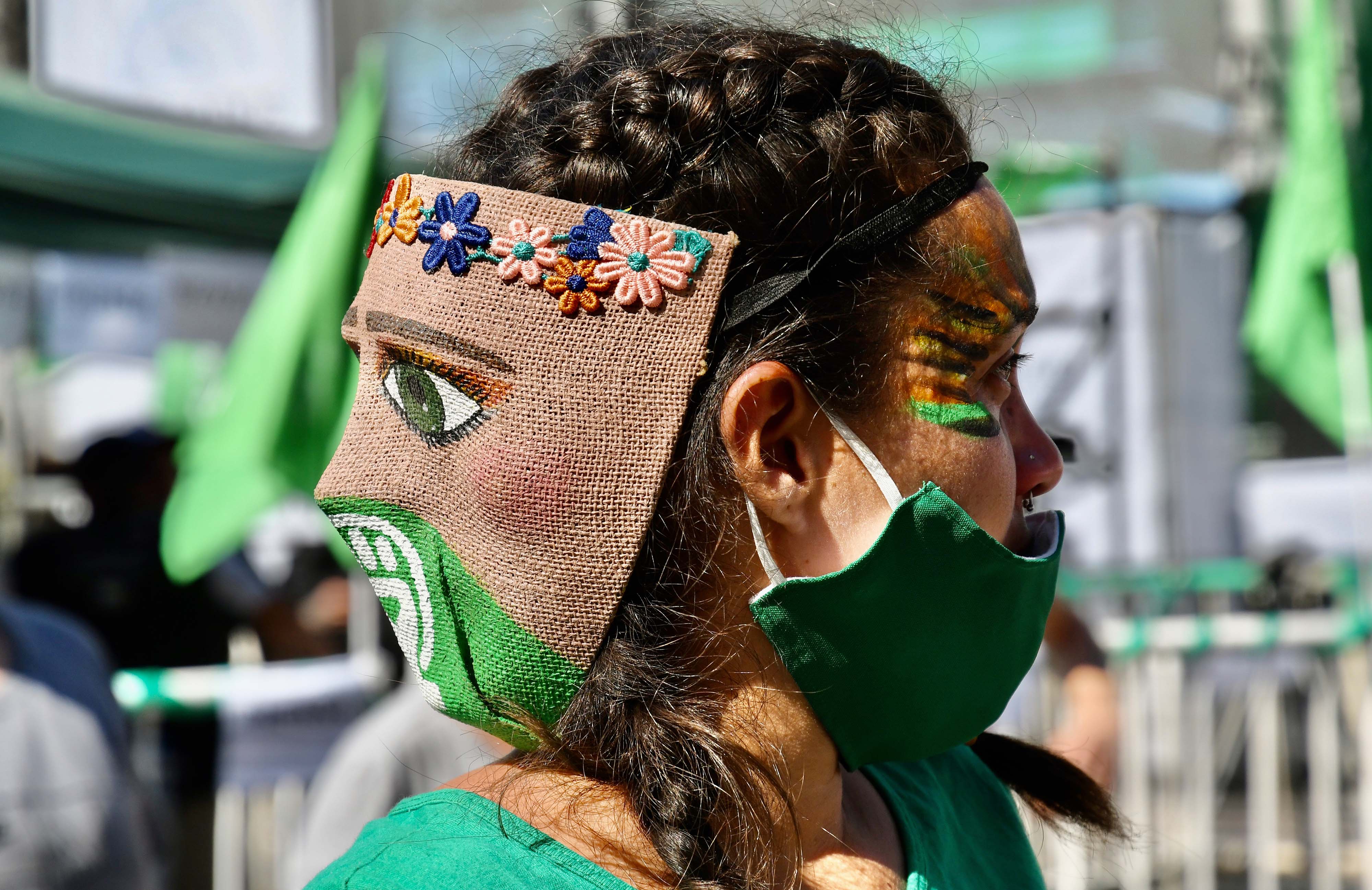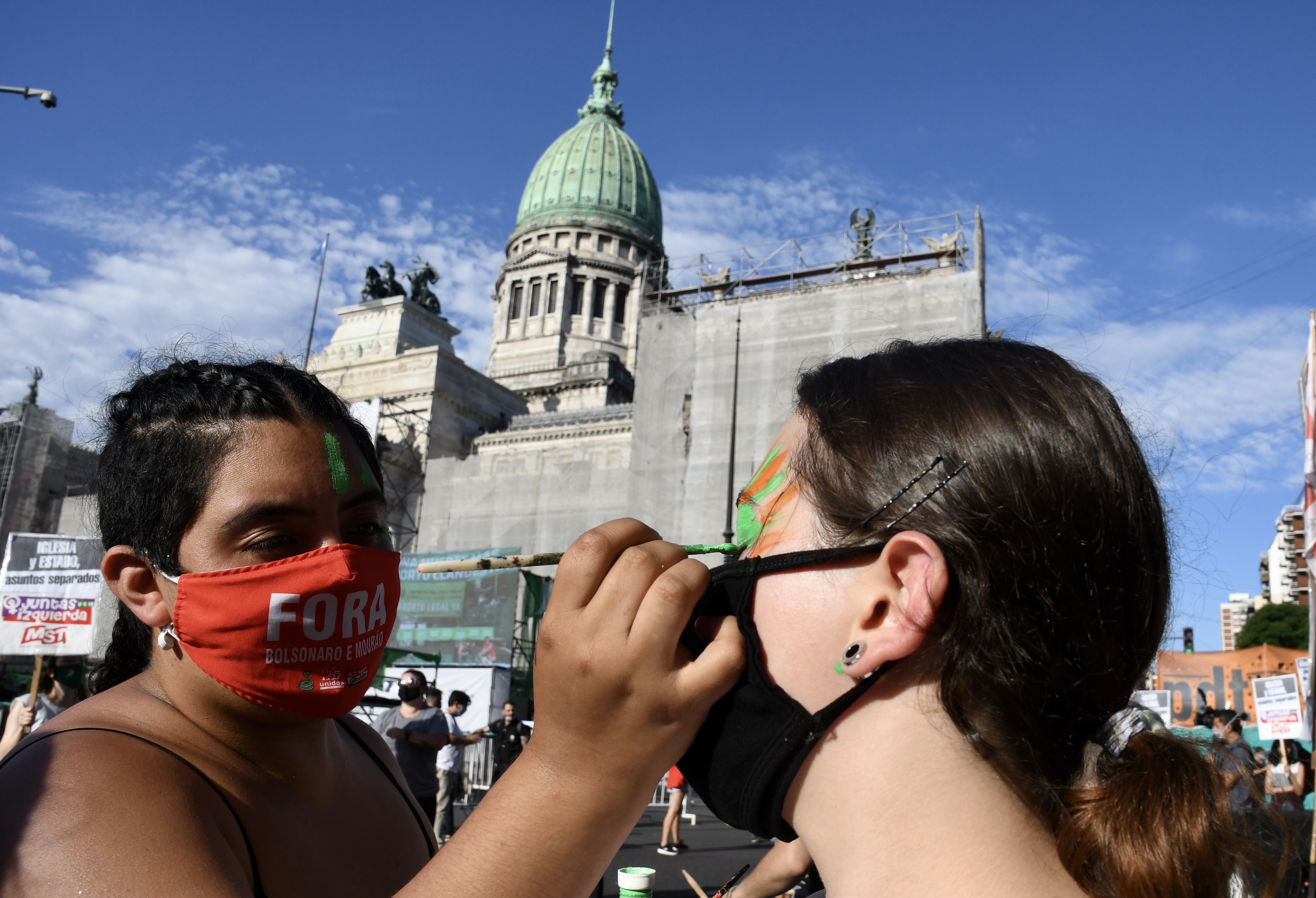 Las integrantes de las agrupaciones llegaron con bombos y redoblantes y grupos de jóvenes independientes acompañaban la jornada pintándose los rostros con glitter y pintura verde a la espera de la votación que se prevé será durante la madrugada del viernes.