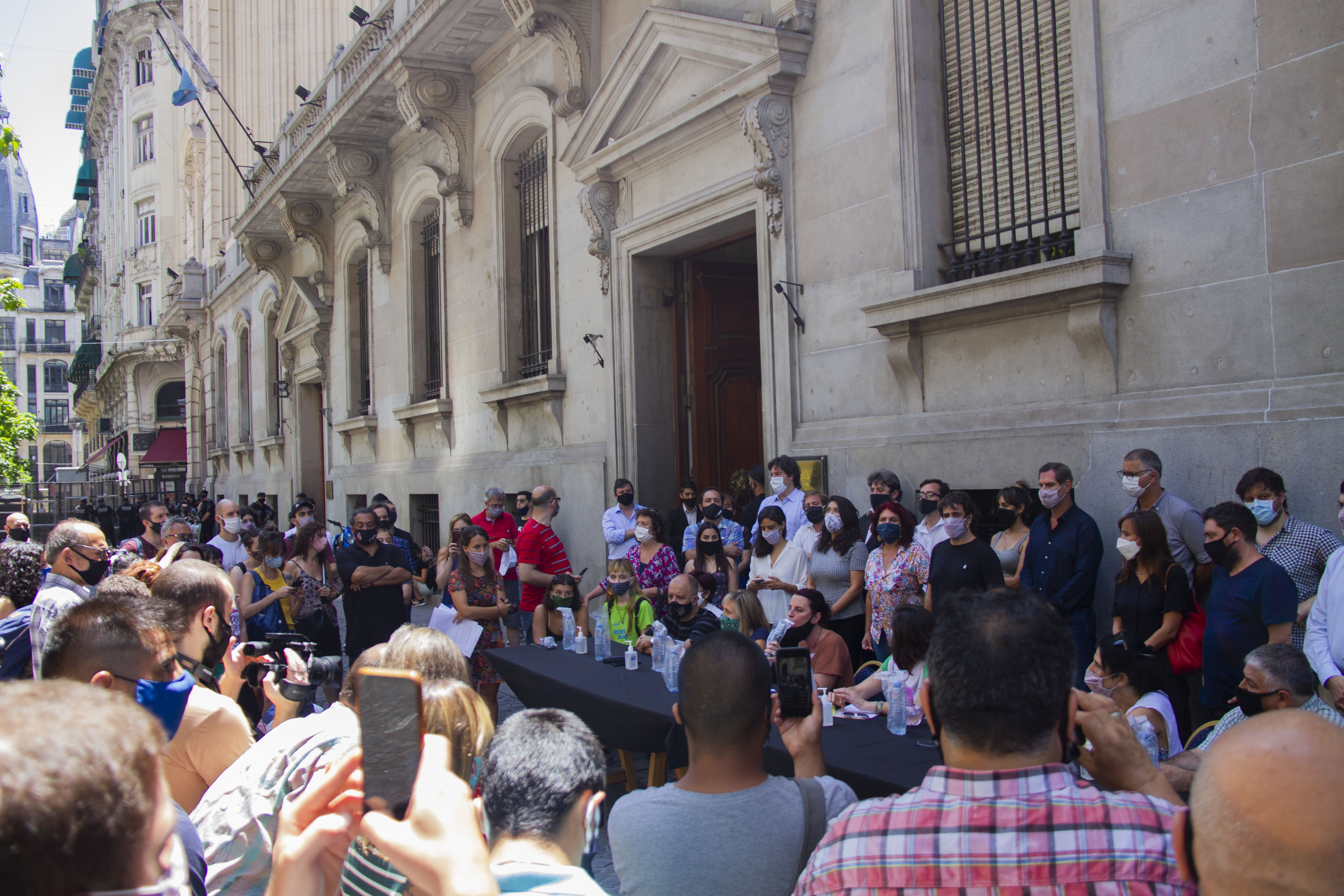 La decisión de los jueces fue repudiada este lunes durante una conferencia de prensa, organizada en las puertas de la Legislatura porteña, donde participaron legisladores del Frente de Todos (FdT) y del Frente de Izquierda, así como también representantes sindicales, de centros de estudiantes, cooperadoras y diversos colectivos de la comunidad educativa.
