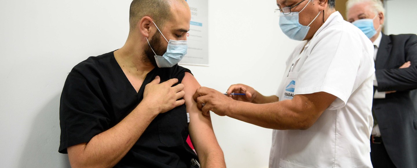 El médico Francisco Traverso fue el primer vacunado del Hospital Posadas, el lugar donde esta mañana comenzó formalmente la Campaña Nacional de Inmunización contra el Coronavirus, que se lanzó a las 9 en forma simultánea en todo el país.