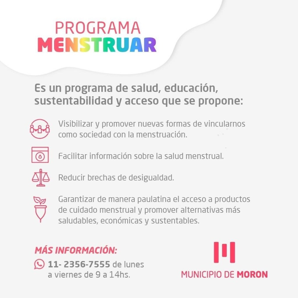 El Municipio de Morón continúa avanzando la aplicación del programa de educación y distribución gratuita de productos de gestión menstrual en distintos puntos del distrito, con el objetivo de promover alternativas más saludables, económicas y sustentables.