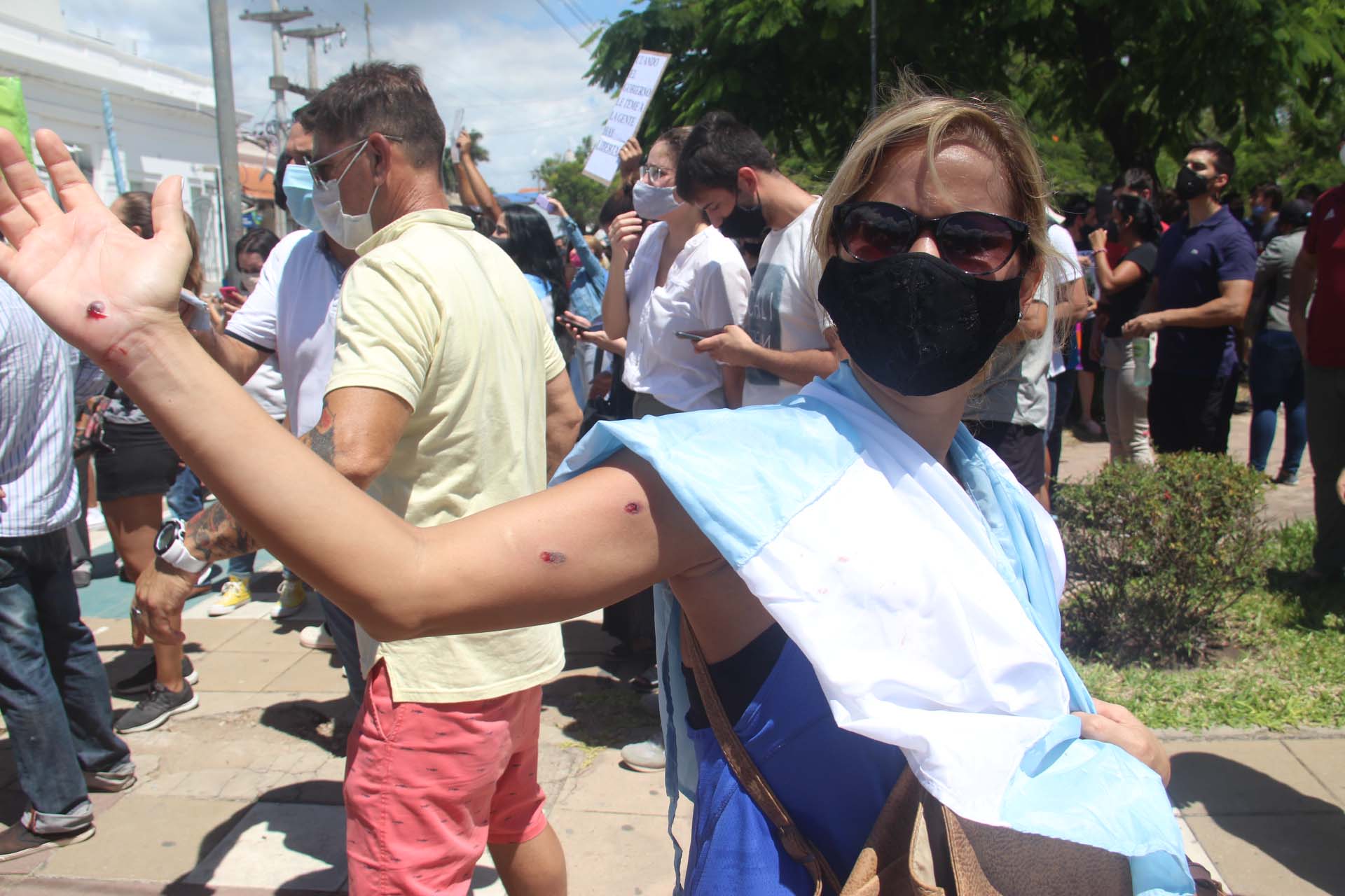 Los manifestantes, que piden que no se regrese a una fase de aislamiento social al grito de «queremos trabajar», terminaron enfrentándose a golpes de puño, gritos, empujones y corridas con la policía provincial. Pasadas las 16, estos enfrentamientos continuaban en la capital formoseña con fuerte accionar de la policía provincial contra los manifestantes.