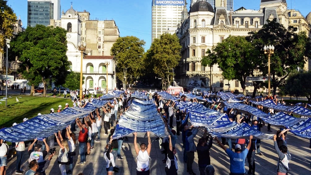 Cada paño fue sostenido por 12 personas, a una distancia interpersonal de dos metros.