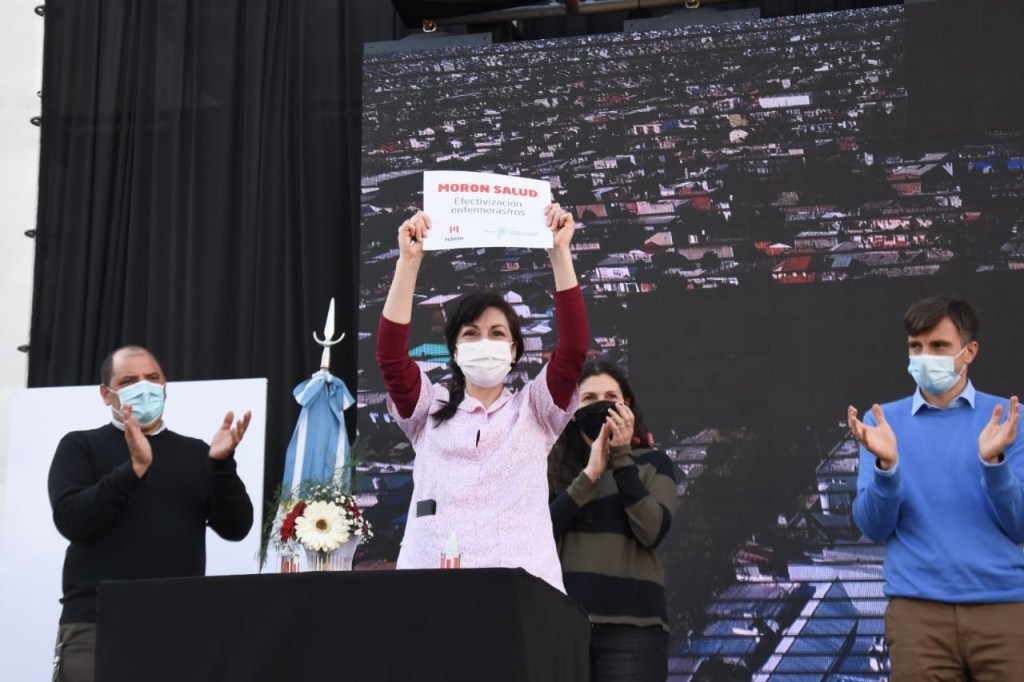 El acto se realizó en la plaza San Martín de Morón y estuvieron presentes la subsecretaria de Atención y Cuidados Integrales, Dra. Alexia Navarro; el director del Hospital Posadas, Alberto Maceira; la diputada nacional por el Frente de Todos, Mónica Macha; y el presidente de ACUMAR, Martín Sabbatella.