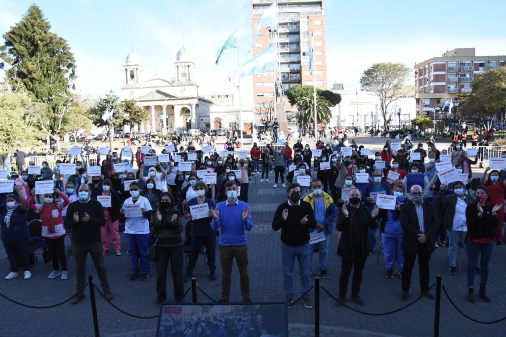 El intendente Lucas Ghi, junto al ministro de Salud de la provincia de Buenos Aires, Nicolás Kreplak, llevaron adelante un reconocimiento al personal de salud por su desempeño a lo largo de la pandemia. Además, se efectivizaron los puestos de trabajo de 180 trabajadores y trabajadoras sanitarios que pasaron a planta permanente. Se trata de 26 personas licenciadas en enfermería, 136 enfermeras y enfermeros profesionales y 18 auxiliares en enfermería.