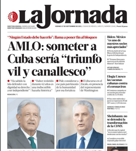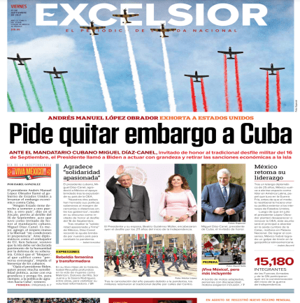 Ante el presidente de Cuba, Miguel Díaz-Canel, invitado de honor al Desfile Militar que se llevó a cabo en este mes de septiembre, AMLO, pidió “respetuosamente al gobierno de Estados Unidos a levantar el bloqueo contra Cuba, porque ningún país tiene derecho a someter a otro pueblo, a otro país”.