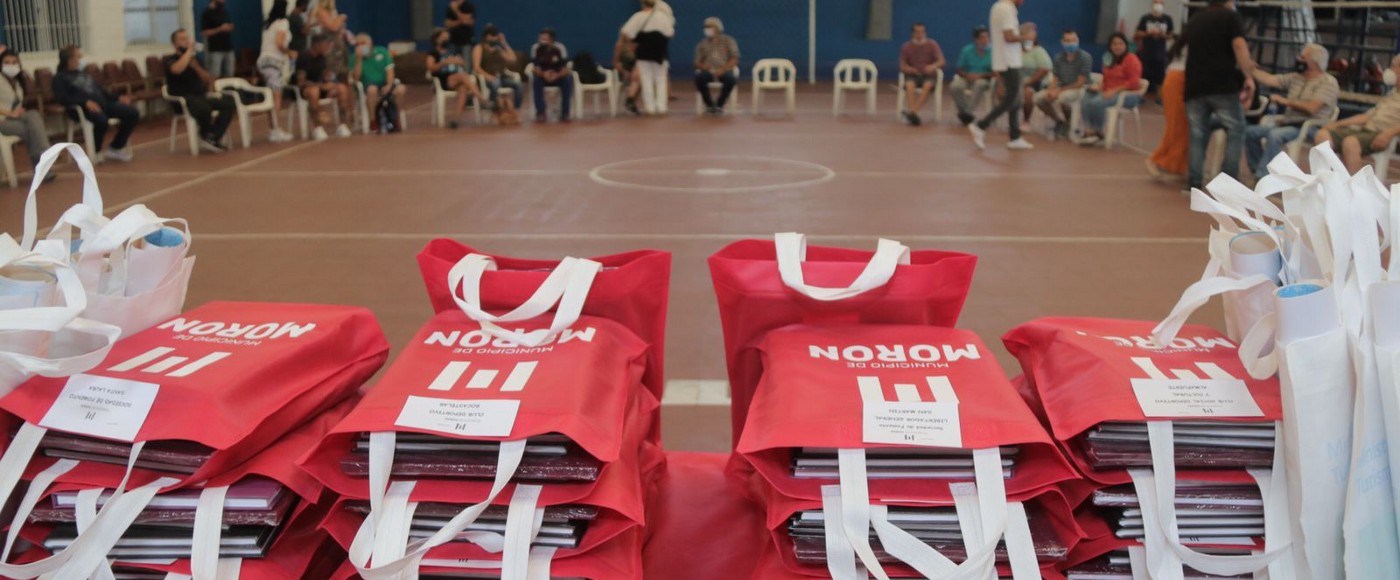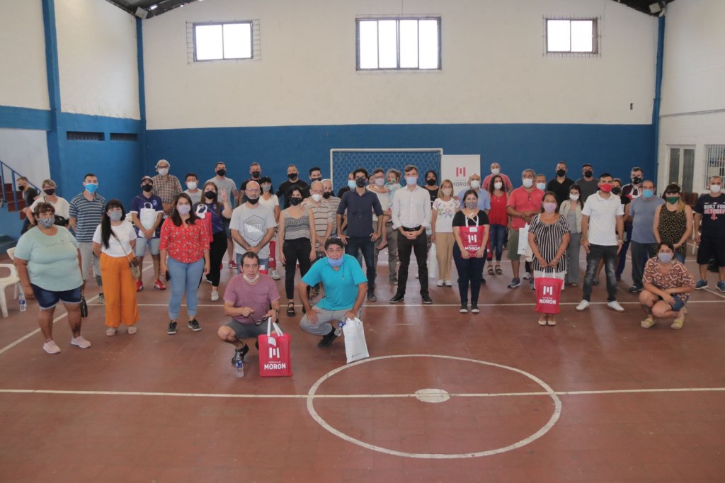 El intendente Lucas Ghi y el director nacional de Clubes Argentinos, Francisco Chibán, entregaron libros contables a representantes de 15 instituciones deportivas de Morón en el Club Almafuerte de Castelar.