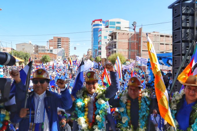 Por otro lado, el expresidente Evo Morales, quien acudió a la celebración, expresó que: “Hermanas y hermanos, son tiempos de reflexión, son tiempos de unidad y esta concentración es la mejor respuesta”.