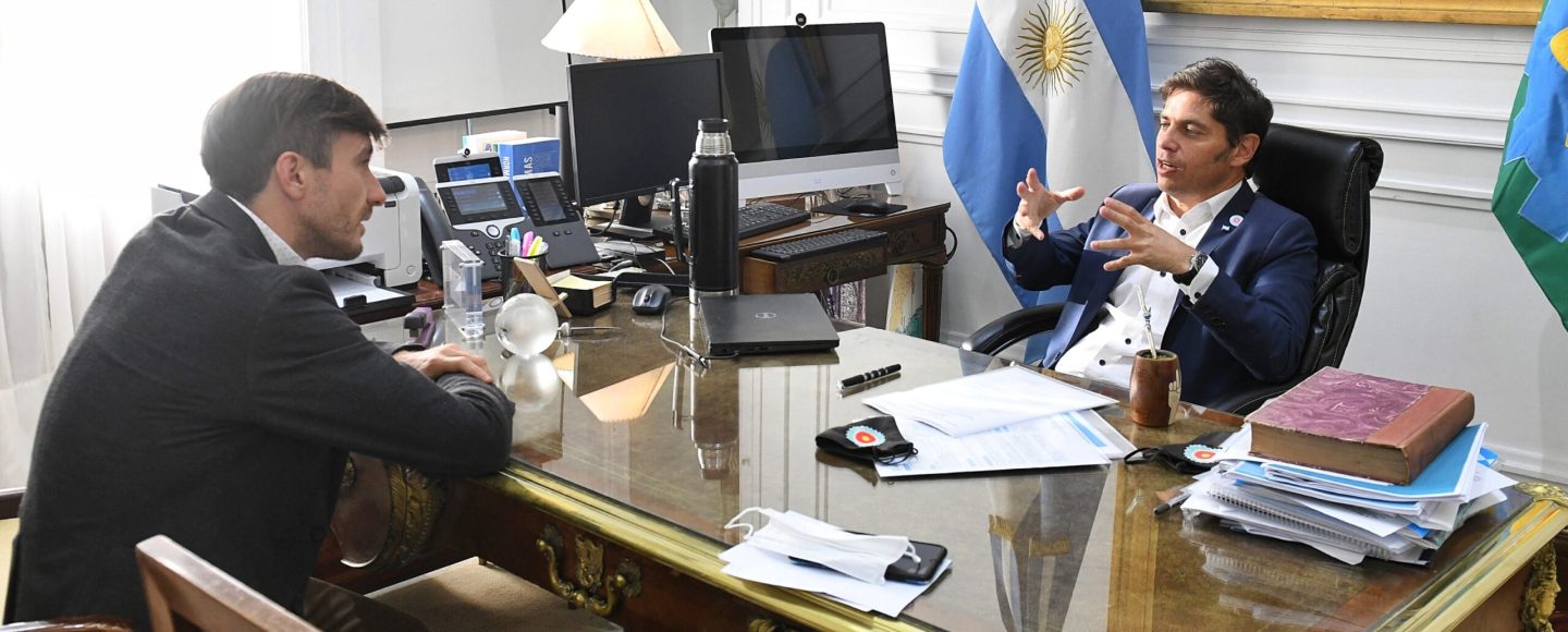 El gobernador de la provincia de Buenos Aires, Axel Kicillof, mantuvo hoy una reunión en Casa de Gobierno con el intendente de Morón, Lucas Ghi, en la que analizaron el avance de las obras de infraestructura que se llevan a cabo en ese municipio y la ampliación de las políticas provinciales en el territorio.