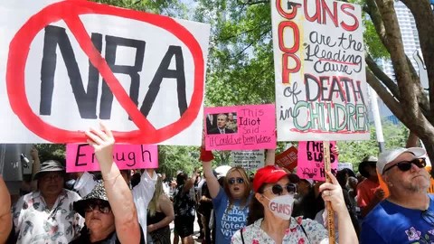 La ciudad de Houston ha sido escenario de masivas protestas contra la Asociación Nacional del Rifle que está celebrando su convención anual, justo tres días después de que un adolescente armado matara a 19 estudiantes y dos maestros en la Escuela Primaria Robb en la ciudad de Uvalde, unas 80 millas al oeste de San Antonio, Texas.