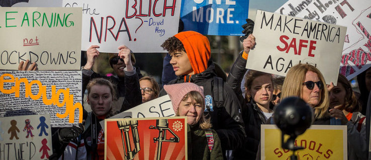 Condenando el libre porte de armas, los manifestantes han marchado con pancartas en las que se podían leer “Prohíban los rifles de asalto ahora”, “¿Cuándo querrán a sus hijos más que a las armas de fuego?” y “Rifles de asalto son para asesinar”.