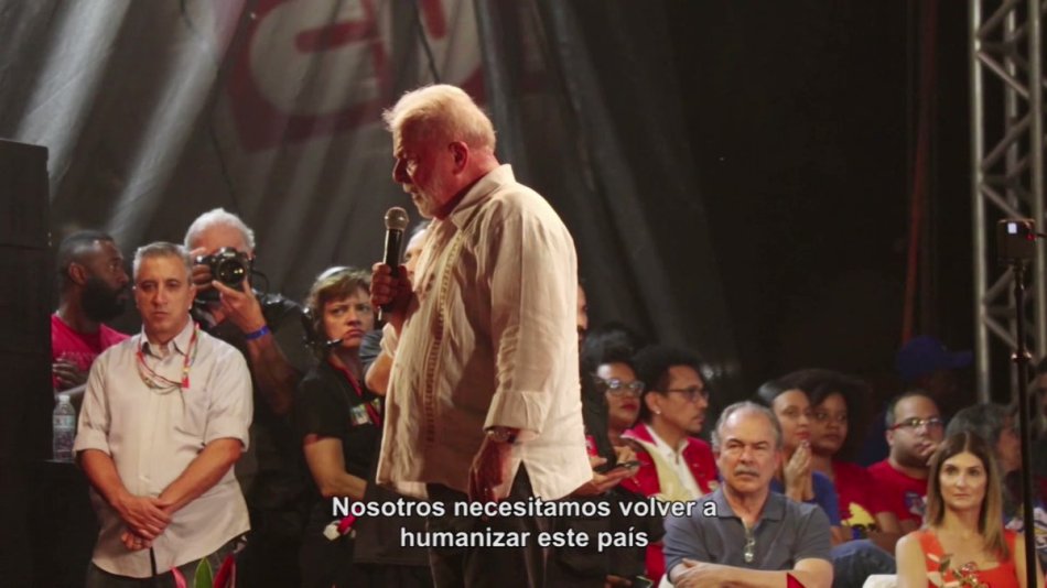 En el gran acto de apoyo a su precandidatura a la presidencia de la República por parte del Partido de los Trabajadores (PT), Lula subrayó: «Nosotros necesitamos volver a humanizar a este país. Este país tiene que querer libros y no armas».