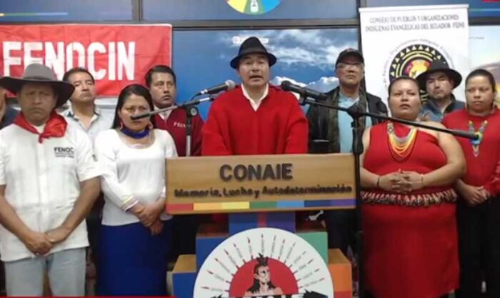En similar sentido se pronunciaron los líderes del Consejo de Pueblos y las Organizaciones Indígenas Evangélicas del Ecuador (Feine) y la Confederación Nacional de Organizaciones, Indígenas y Negras (Fenocin), también convocantes al paro.