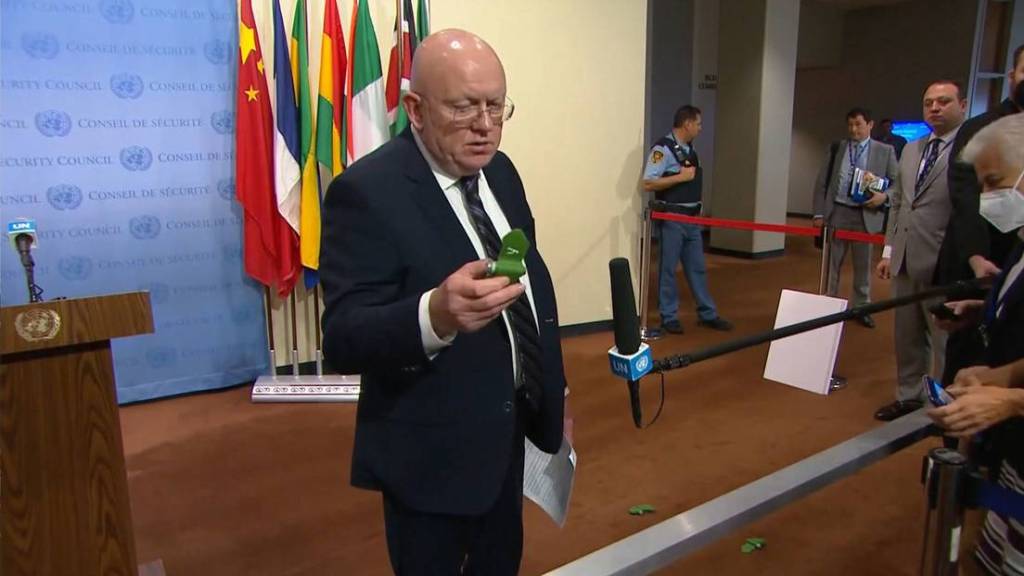 El representante permanente de Rusia ante la ONU, Vasili Nebenzia, presentó este miércoles, durante una reunión del Consejo de Seguridad, las minas antipersona utilizadas por las Fuerzas Armadas ucranianas contra la población de la República Popular de Donetsk.