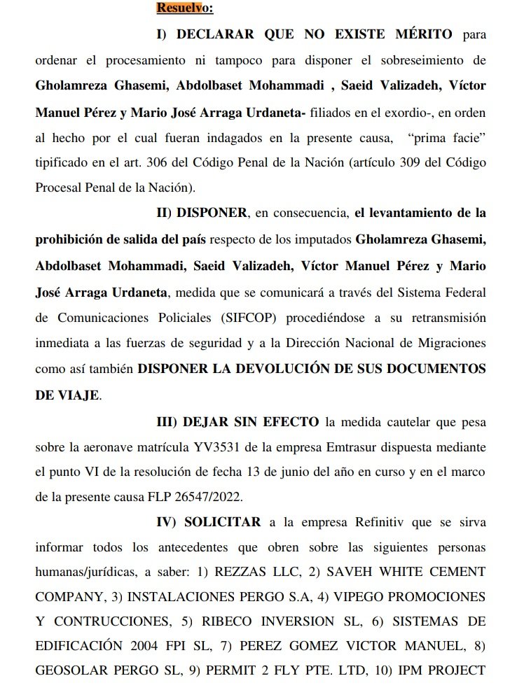 Según trascendió, los jueces argentinos no encontraron pruebas contundentes para acusar a los tres iraníes y dos venezolanos que restaban por abandonar territorio argentino.