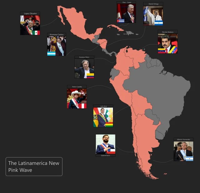 Gustavo Petro fue elegido presidente de Colombia en junio de 2022. Gabriel Boric, se convirtió en el presidente más izquierdista de Chile en casi 50 años, tras ganar las elecciones en diciembre de 2021; un mes antes, la política de izquierda Xiomara Castro ganó en Honduras, 12 años después de que su esposo, Manuel Zelaya, fuera destituido de su cargo como presidente por un golpe militar.